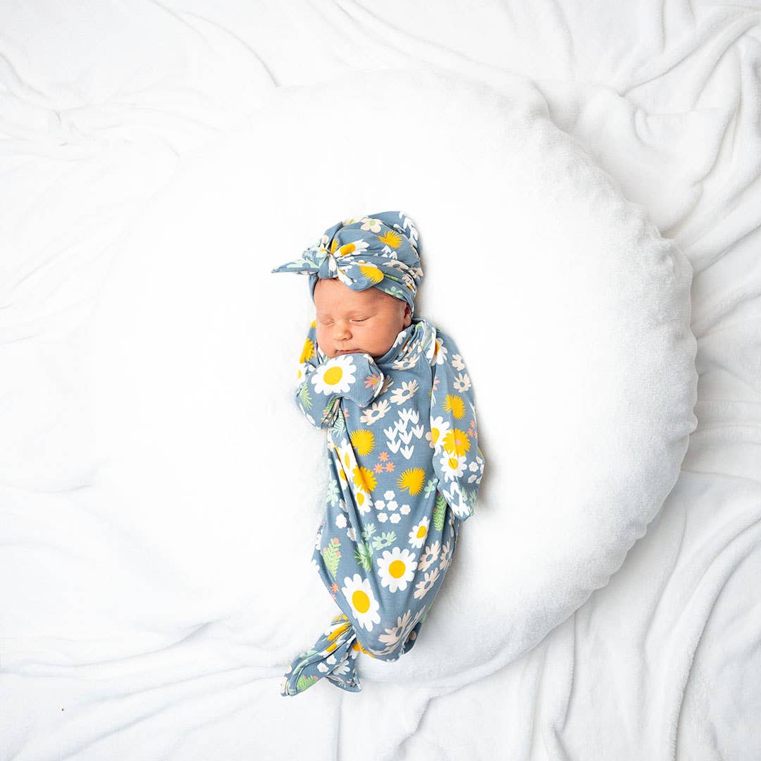 Blue Daisy Bamboo Gown Newborn Baby Gift Set