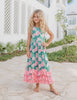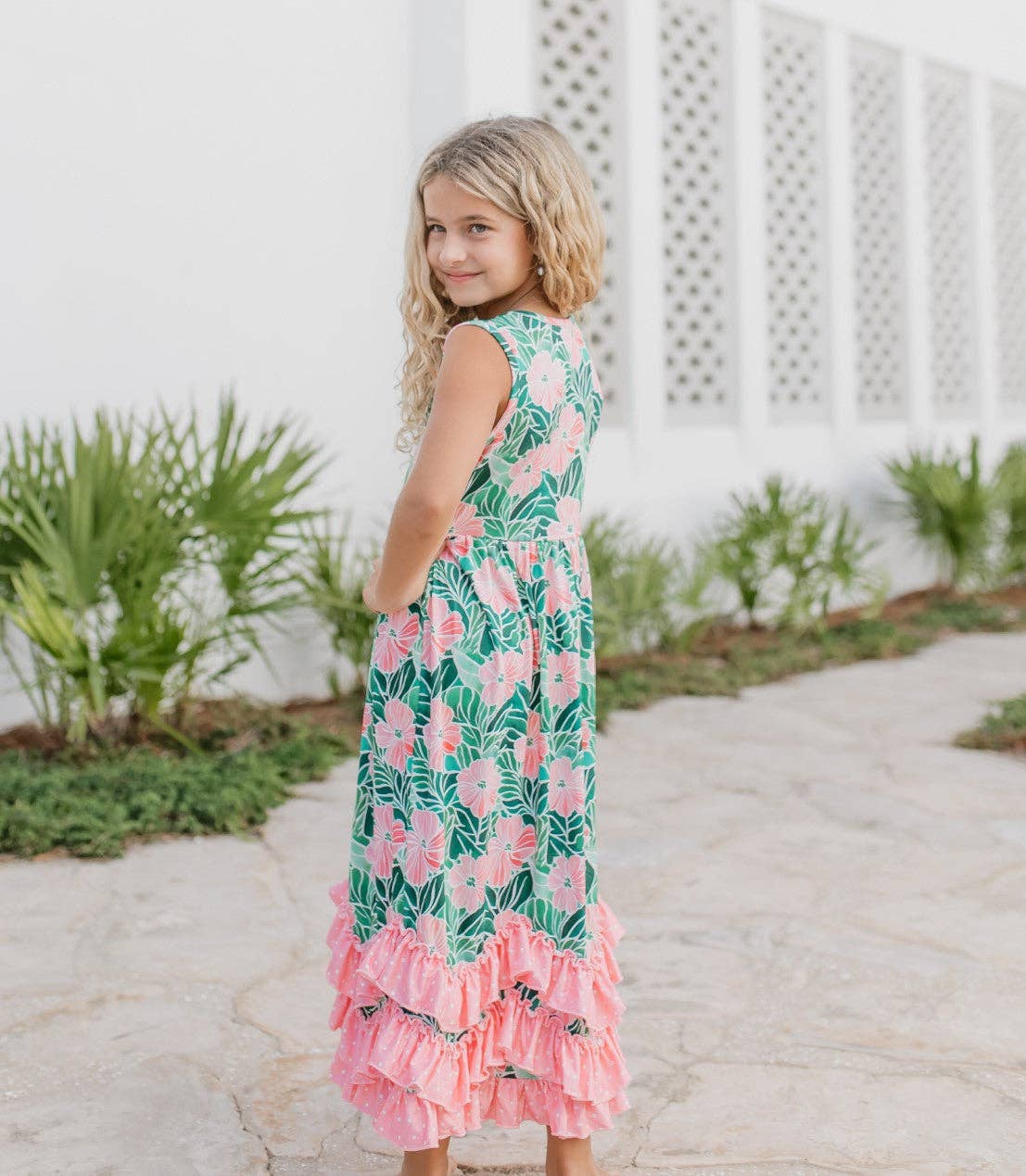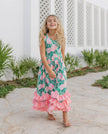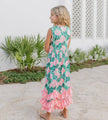3 Tiered Pink Green Tropical Spring Ruffles Dress