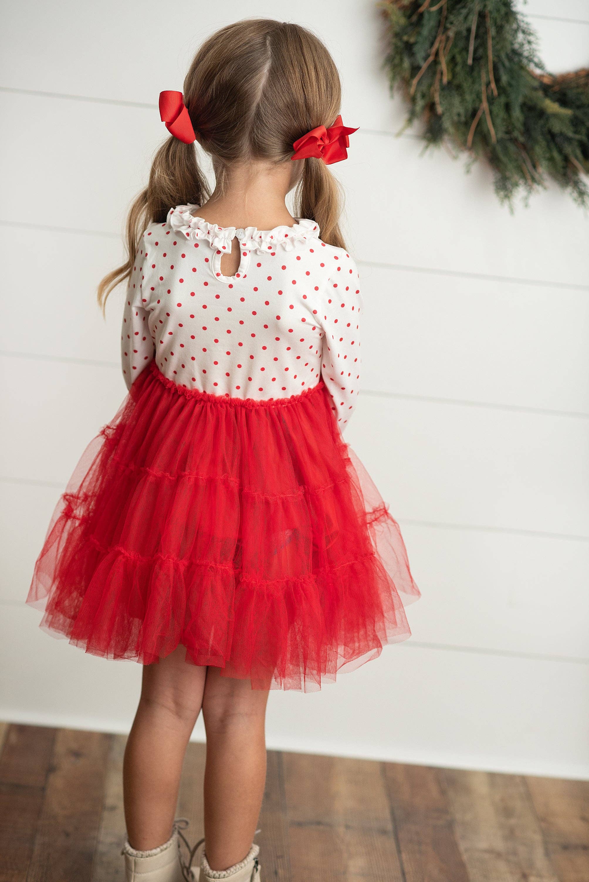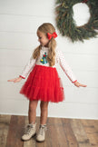 Kids Red & White Dot Pom Pom Christmas Tree Tulle Dress